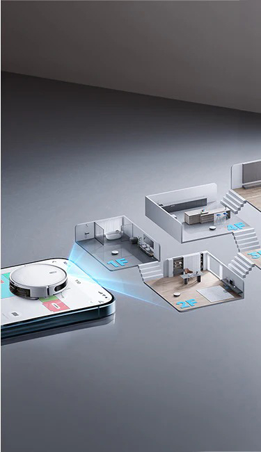 Mapea tu hogar con precisión con hasta 5 mapas editables, reconociendo las distintas habitaciones para zonas de limpieza personalizadas en viviendas de varios pisos.